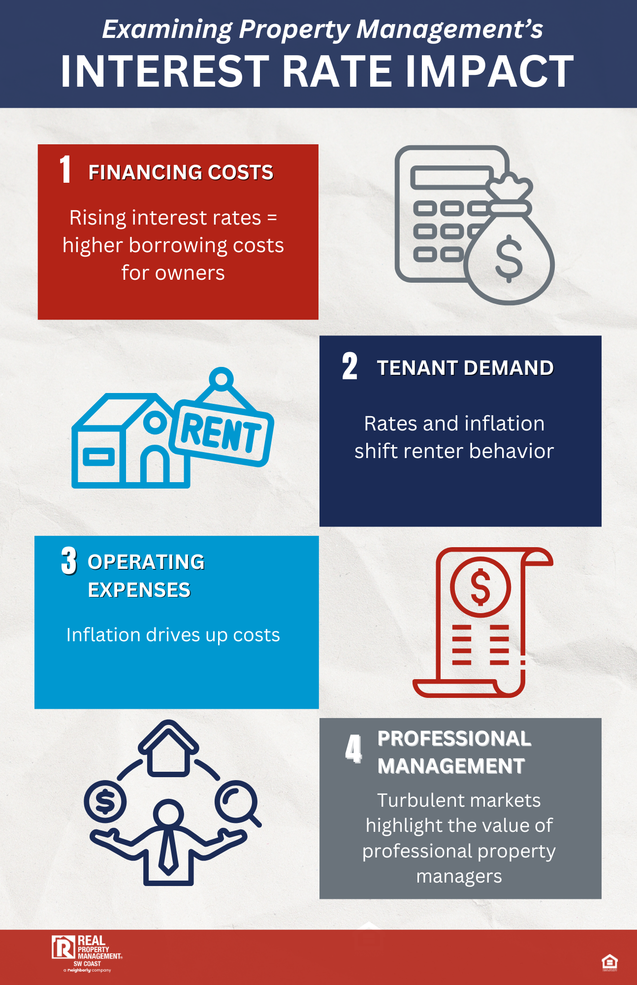 At Real Property Management SW Coast, we monitor market conditions to help rental property owners stay ahead. Contact us today to learn how we can protect your revenue in any economy.